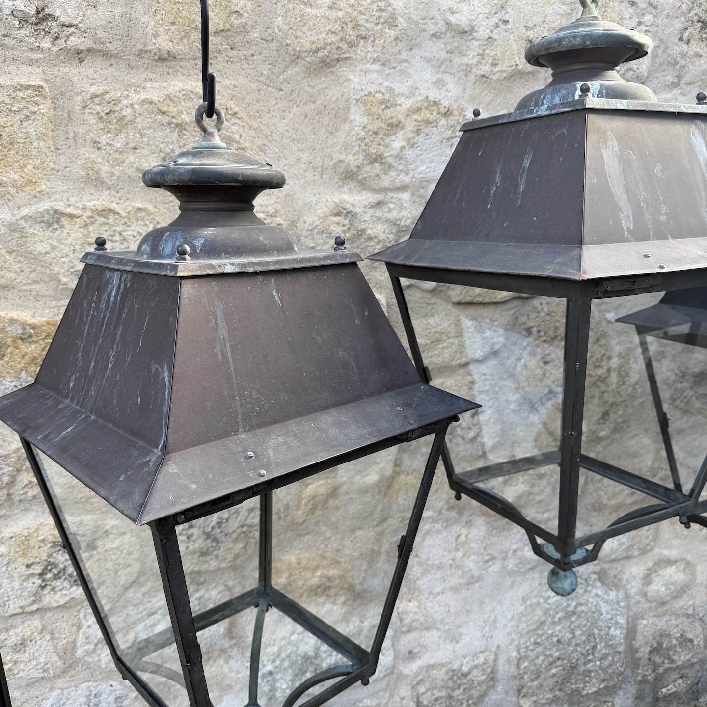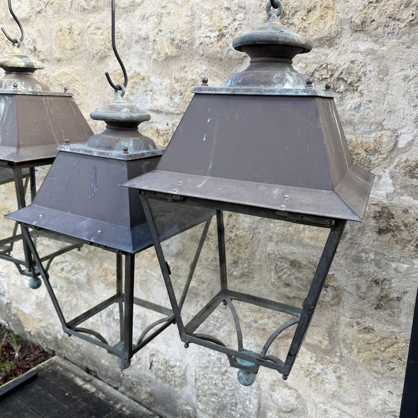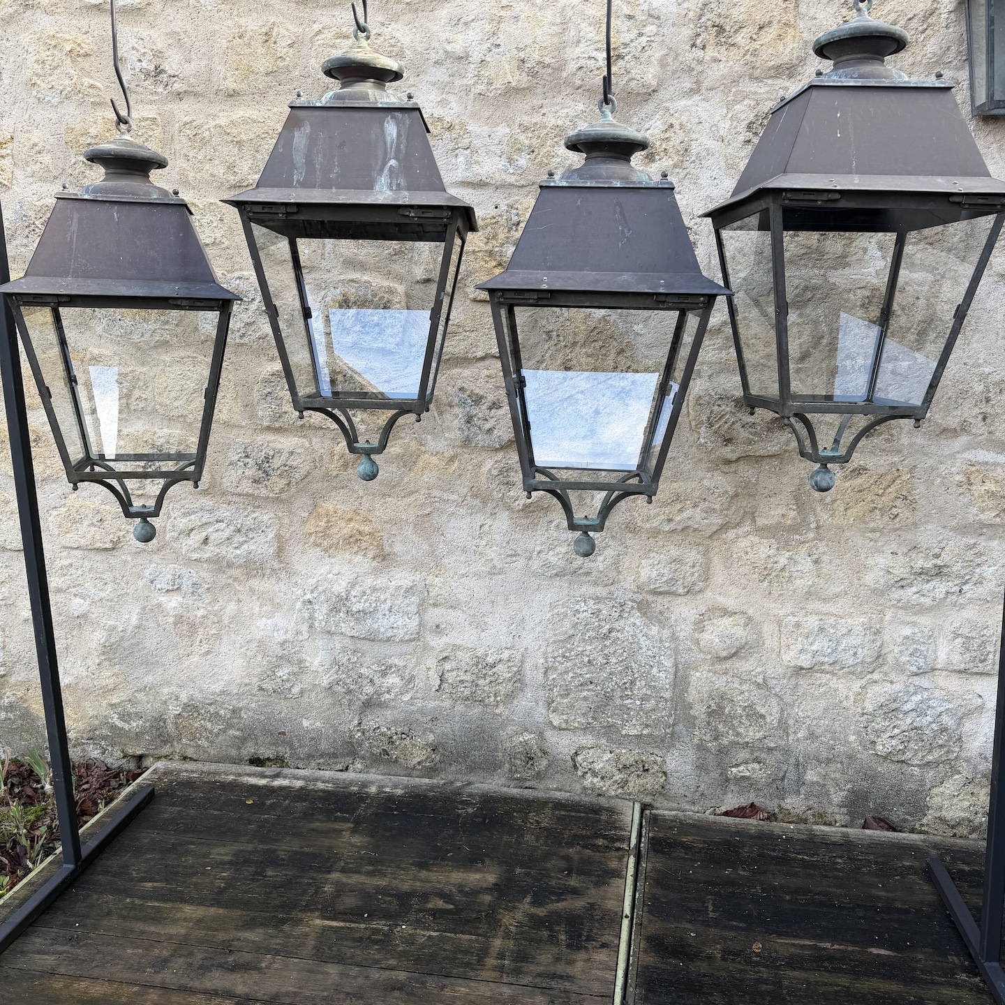 Serie de 4 lanternes en cuivre a patine d’origine « vert de gris ».